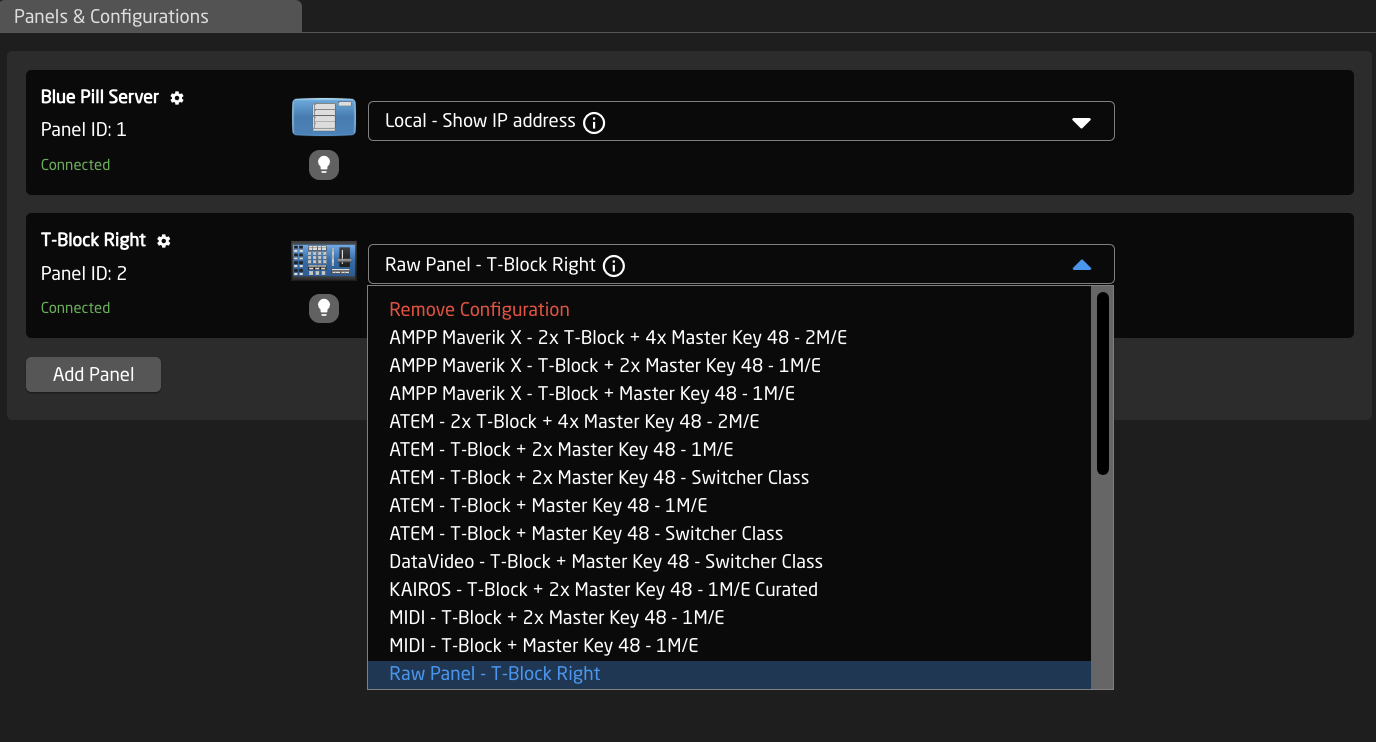 コントローラのレイアウトは構成によって決定されます。ほとんどの場合、汎用設定で十分ですが、パネルとデバイスの組み合わせによっては特定の構成が必要です。